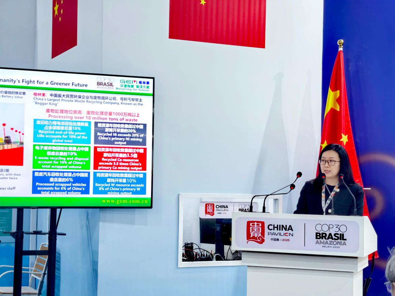 GEM, representing China’s circular economy sector, is attending the UN Climate Conference for the third consecutive year.GEM’s Director of ESG Management, Xu Xiaoyu, outlined the company’s “Flexible Global Expansion” strategy, rooted in the integration of technology and culture. By combining technology empowerment, industrial development, and cultural integration in Indonesia, this strategy offers an innovative model for advancing collaboration across the global green industry value chain.