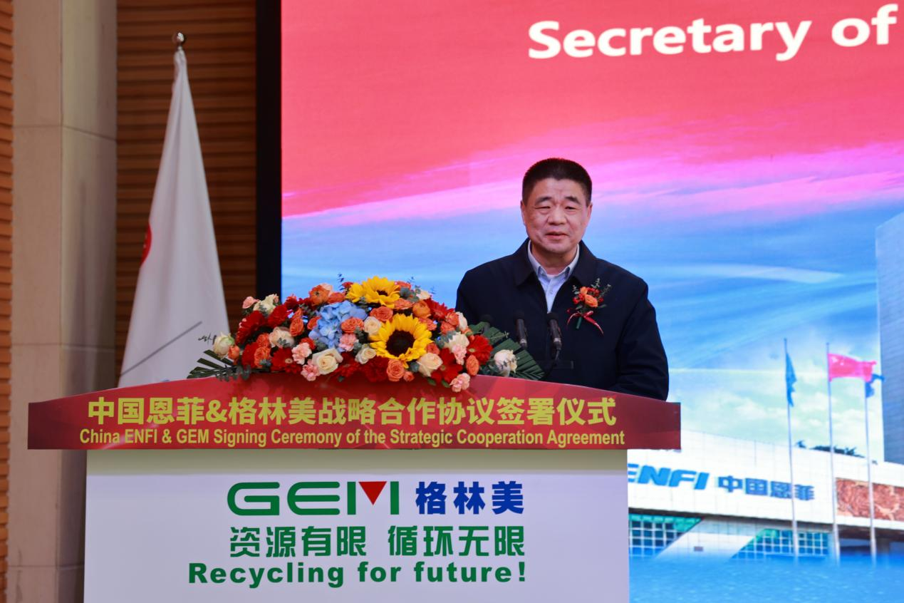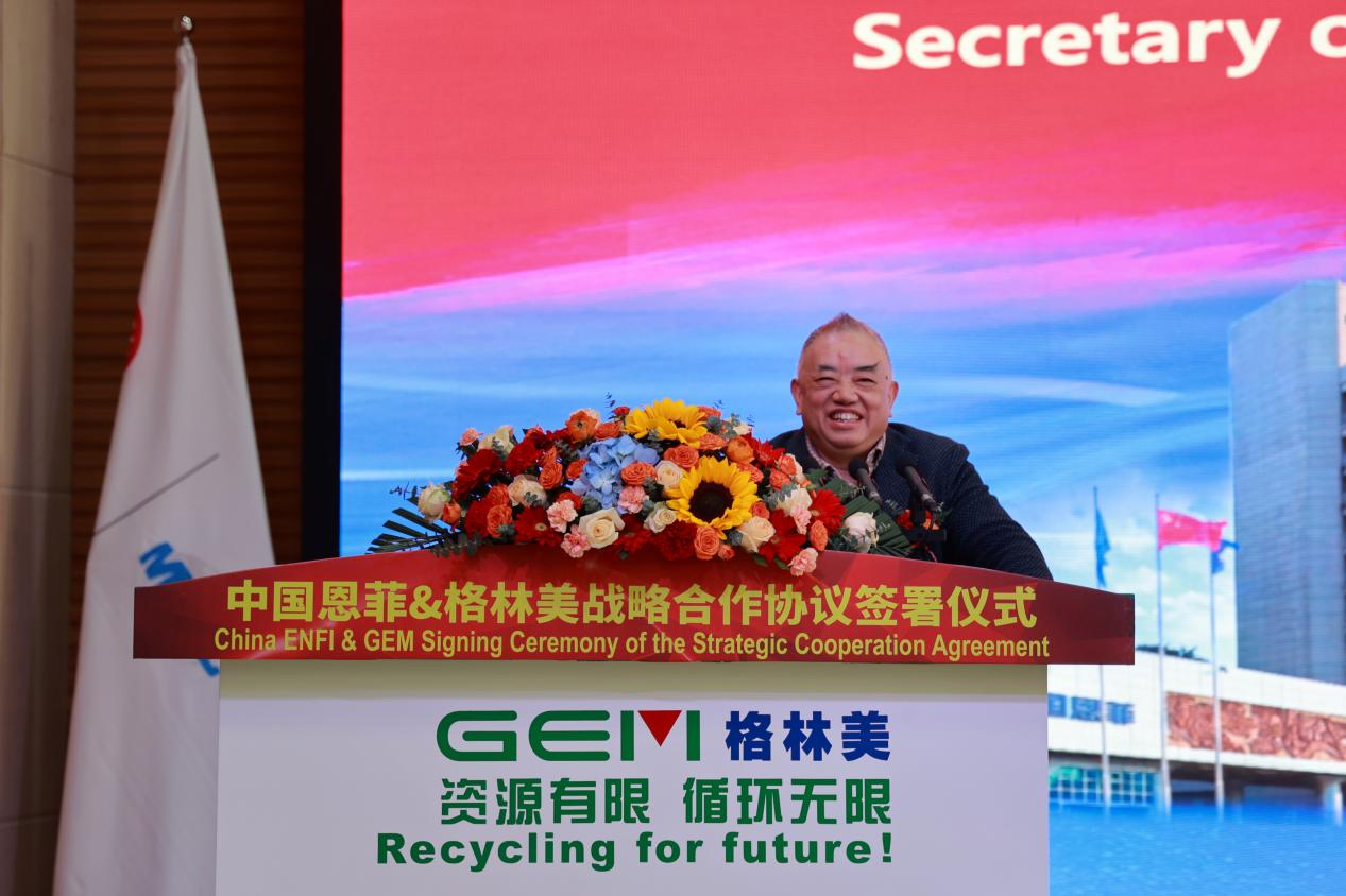 China ENFI Chairman Liu Cheng delivered a heartfelt and emphatic speech, reflecting the broad vision of a central enterprise and a new global development outlook. He first expressed sincere gratitude for the warm reception and sincere treatment from Chairman Xu Kaihua and highly praised GEM’s remarkable achievements over the past 20-plus years.