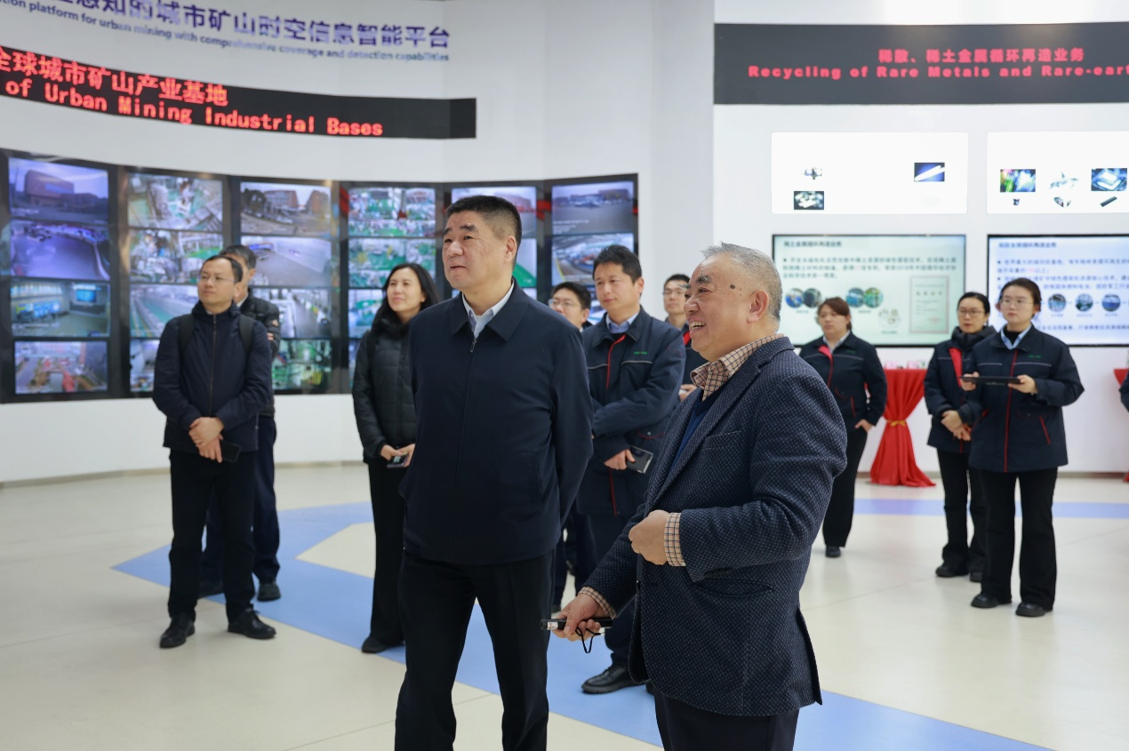 ▲Chairman Liu Cheng of China ENFI (second from right) Visiting GEM's National “Urban Mining” Museum