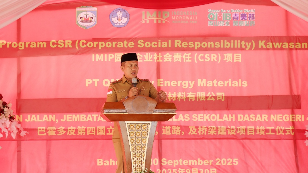PT.QMB New Energy Materials once again demonstrated its commitment to supporting community infrastructure and educational development through its Corporate Social and Environmental Responsibility (CSR) program. On Tuesday, September 30th , 2025, PT.QMB New Energy Materials officially inaugurated the new classrooms and supporting facilities for SDN 04 Bahodopi, along with road infrastructure and a connecting bridge in Bahodopi Village, Bahodopi Subdistrict, Morowali Regency, which had been under construction since 2024.