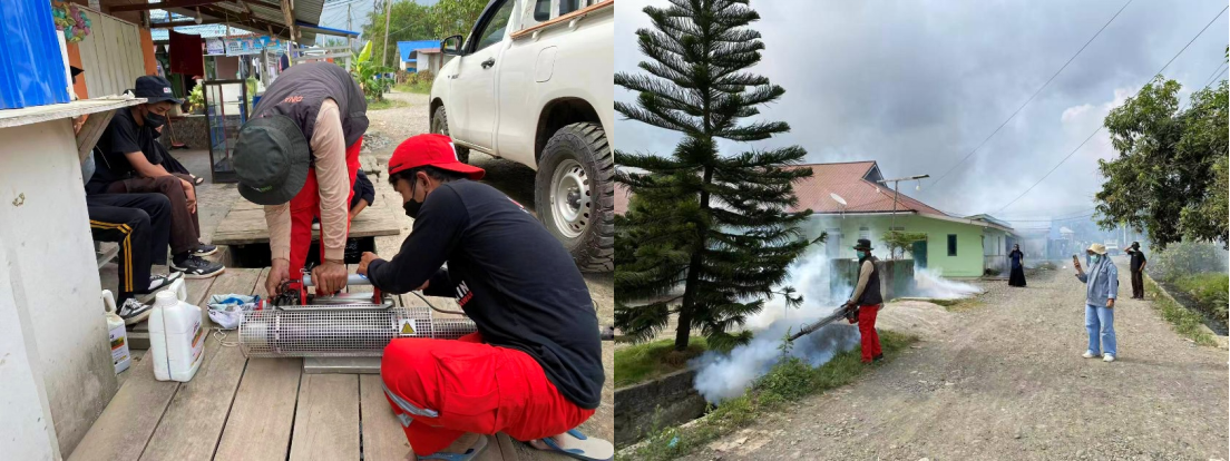 The main activities included Fogging (Adult Mosquito Spraying) in residential areas with high potential for water stagnation and in locations reported to have dengue cases. A joint team from IMIP CSR, QMB, and the Bahodopi Community Health Center carried out the spraying using standard health-grade fogging machines. In addition to fogging, participants also distributed Abate powder and provided education on Mosquito Nest Eradication (PSN). Residents were instructed to sprinkle Abate powder into water storage containers such as bathtubs, drums, and tanks, as well as liquid Abate to drainage ditches or stagnant water areas that could become mosquito breeding sites.